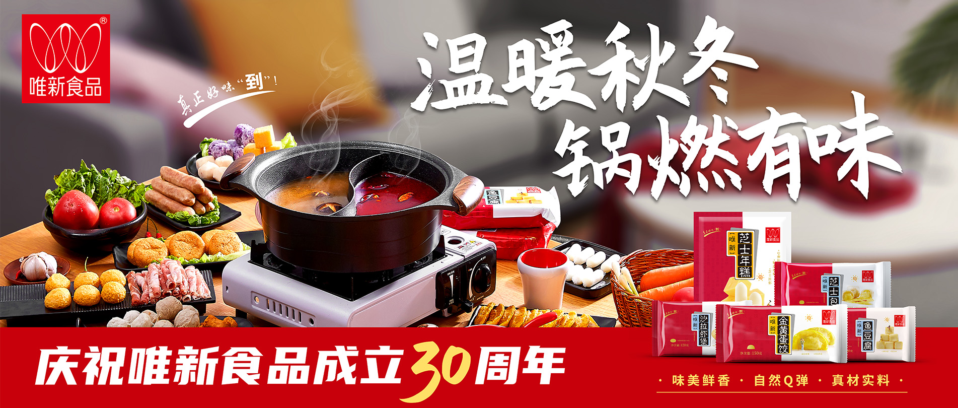 • 選擇蛋白質(zhì)含量及新鮮度高的豬后腿肉為原料,模擬手工捶打的打漿工藝,再經(jīng)煮制、冷卻、速凍工藝才可生產(chǎn)出自然脆彈的唯新貢丸,是居家佐餐、火鍋的美味食品。近年來我們還研發(fā)生產(chǎn)了香腸、蝦滑、魚丸、牛肉丸等大眾喜愛的家庭火鍋料速凍食品。